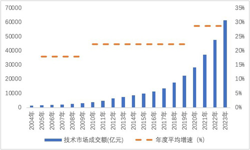 中國(guó)技術(shù)市場(chǎng)成交額走勢(shì)