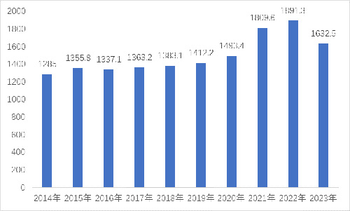 2014-2024年中國(guó)實(shí)際利用外商直接投資金額(億美元)