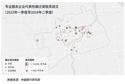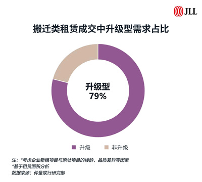 在過去一年半的甲級辦公樓搬遷類租賃成交中,升級型需求占比79%,其中包含乙級辦公樓租戶向甲級樓宇項目升級的需求,同時也包含樓齡、品質(zhì)差異顯著的項目間的流動,另有部分租戶正在利用當前租金下降的機會躍升至超甲級辦公樓項目。而此類搬遷的核心考量,則在于成本效益和樓宇品質(zhì)之間的“質(zhì)價比”平衡。從租賃搬遷熱力圖可見,新近竣工項目較為集中的板塊內(nèi)升級需求較為顯著,同時,部分成熟高品質(zhì)項目,通過具有競爭力的價格策略同樣獲得升級型搬遷需求的遷入。