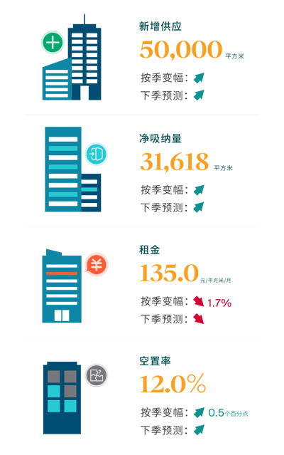 “展望2024年第三季度,考慮到寫字樓市場租賃需求的增長動力尚處于調(diào)整蓄力階段,且金融城區(qū)域預(yù)計將有約10萬平方米的新增供應(yīng)入市,其或?qū)⑼ㄟ^其更具競爭力的租金策略刺激全市凈吸納量小幅增長。然而,鑒于整體需求恢復(fù)尚顯疲弱,預(yù)計空置率仍將面臨上行壓力,整體市場仍將靜待需求的進(jìn)一步釋放!