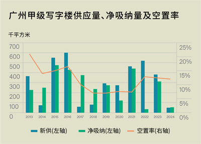2024年第二季度,廣州寫字樓大宗交易市場略有升溫,錄得一宗成交,成交金額為人民幣2.16億元,標(biāo)的為廣州海灝國際大廈的寫字樓單元。