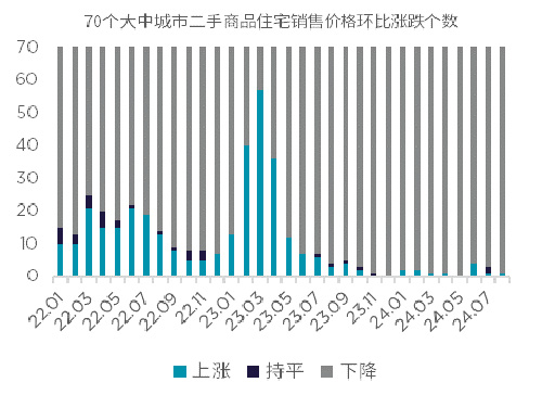樓市寬松、優(yōu)化政策持續(xù)出臺,然而前期的政策效力并未能扭轉(zhuǎn)市場下行的趨勢,全國新房銷售面積及全國銷售價(jià)格整體呈現(xiàn)持續(xù)回落。以一二線重點(diǎn)城市為代表的二手房市場在整體樓市低迷的情況下"以價(jià)換量",部分城市二手房放盤量大增,刺激核心區(qū)域的剛需戶型成交相對活躍。但局部市場二手房成交的階段性活躍并未給整體市場帶來提振,成交價(jià)的顯著下行也進(jìn)一步加重了市場觀望情緒。517新政出臺后,局部市場成交活躍度出現(xiàn)階段性提振,但結(jié)合整體表現(xiàn)和持續(xù)性來看,市場恢復(fù)仍顯乏力。