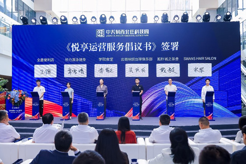 本次開園盛典上,包含全惠便利店、悅力游泳健身、學(xué)院食堂、云尚響袋臺球俱樂部、抱樸誠之茶舍、SWANS HAIR SALON在內(nèi)的六家商戶代表共同完成《悅享運(yùn)營服務(wù)倡議書》的簽署,圍繞“強(qiáng)化服務(wù)意識,共創(chuàng)優(yōu)質(zhì)服務(wù)品牌”,“加強(qiáng)溝通協(xié)作,構(gòu)建服務(wù)聯(lián)動機(jī)制”,“關(guān)注社會責(zé)任,傳遞正能量”等方面達(dá)成一致,共同為打造優(yōu)質(zhì)的運(yùn)營服務(wù)環(huán)境而努力,為科技創(chuàng)新提供堅(jiān)實(shí)的保障。