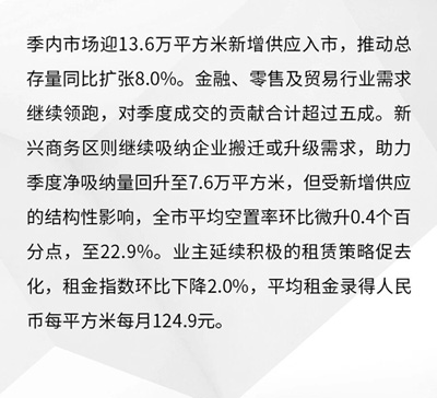 第一太平戴維斯(Savills)發(fā)布2025第三季度中國辦公樓市場回顧及展望。中國寫字樓市場仍映射出宏觀經(jīng)濟的兩速格局:新經(jīng)濟產(chǎn)業(yè)迅速擴張,傳統(tǒng)行業(yè)持續(xù)承壓?萍寂c制造企業(yè)偏向自用或遷入產(chǎn)業(yè)園區(qū),傳統(tǒng)企業(yè)則縮減面積、尋求更高性價比。