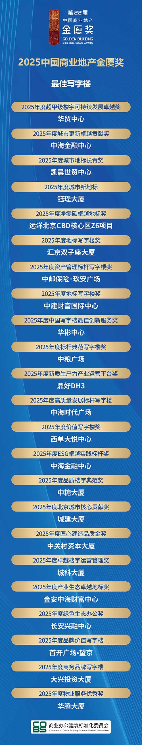 值得關(guān)注的是,“2025中國(guó)寫(xiě)字樓產(chǎn)業(yè)園行業(yè)競(jìng)爭(zhēng)力100強(qiáng)”榜單首次將行業(yè)競(jìng)爭(zhēng)力系列(TOP100榜單)和年度影響力系列(中國(guó)商業(yè)地產(chǎn)金廈獎(jiǎng))分開(kāi)排序,進(jìn)一步提升了排名的嚴(yán)謹(jǐn)性與專業(yè)性。