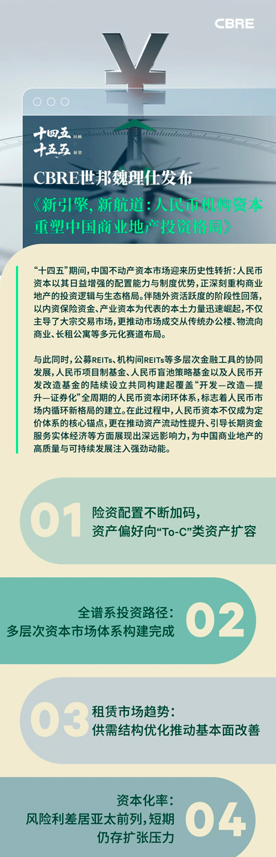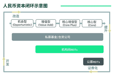 人民幣不動(dòng)產(chǎn)資本市場(chǎng)已構(gòu)建覆蓋“私募基金/合資公司(JV)-機(jī)構(gòu)間REITs-公募REITs”的全譜系金融產(chǎn)品矩陣,精準(zhǔn)匹配不同風(fēng)險(xiǎn)偏好的資本需求,實(shí)現(xiàn)了資本對(duì)不動(dòng)產(chǎn)全生命周期的深度覆蓋與全面參與,“開(kāi)發(fā)-改造-提升-證券化”的人民幣資本閉環(huán)已逐步形成。隨著商業(yè)REITs的推出,人民幣不動(dòng)產(chǎn)金融生態(tài)加速成熟。