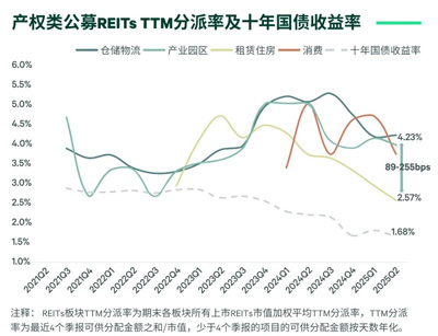 從2025年第二季度的最新表現(xiàn)看,產(chǎn)權(quán)類(lèi)公募REITs市場(chǎng)估值逐步修復(fù),尤其是租賃住房與消費(fèi)基礎(chǔ)設(shè)施估值領(lǐng)先,說(shuō)明市場(chǎng)對(duì)運(yùn)營(yíng)能力強(qiáng)、現(xiàn)金流改善明確資產(chǎn)的“Alpha”定價(jià)正在顯性化。同時(shí),產(chǎn)權(quán)類(lèi)公募REITs的風(fēng)險(xiǎn)利差在89bps—255bps的區(qū)間內(nèi),并呈現(xiàn)出典型的分化特征,這體現(xiàn)出市場(chǎng)對(duì)不同板塊的穩(wěn)定性預(yù)期存在差異:對(duì)倉(cāng)儲(chǔ)物流、產(chǎn)業(yè)園區(qū)整體持謹(jǐn)慎態(tài)度;對(duì)租賃住房現(xiàn)金流穩(wěn)定性認(rèn)可度高。預(yù)計(jì)未來(lái)隨著經(jīng)濟(jì)基本面改善,運(yùn)營(yíng)能力強(qiáng)、現(xiàn)金流改善明確資產(chǎn)的風(fēng)險(xiǎn)利差將會(huì)進(jìn)一步收窄。