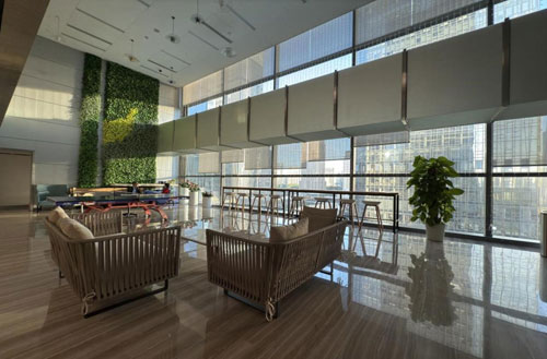 生態(tài)優(yōu)先,以綠色為發(fā)展底色。憑借粵港澳大灣區(qū)春暖花開、面朝大海的地理優(yōu)勢,大廈積極與國際認證標準接軌,采用甲級空間標準和配置,將生態(tài)低碳與智能科技相結合,通過實施照明改造、冷凝水回收、雨污分流、科學用電、園林綠化、四害消殺等措施,打造了綠意盎然、健康環(huán)保的公園式辦公環(huán)境。