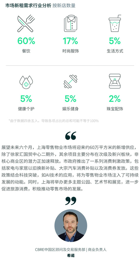 零售業(yè)態(tài)方面,整體占比為30%。其中時裝品類需求最高,國外設(shè)計(jì)師品牌入駐,典型案例包括意大利ZONA20 MILANO在陸家嘴中心L+MALL開設(shè)了全國首店,以及Lesportsac登陸前灘太古里,此外還有一批滑雪、露營與攀巖等細(xì)分領(lǐng)域品牌持續(xù)拓址。生活方式類品牌表現(xiàn)活躍,占零售需求的18%,其中潮玩品牌突出社交和情緒價值,定位年輕消費(fèi)者發(fā)展迅速。KKV、名創(chuàng)優(yōu)品等零售品牌積極拓店。此外,服務(wù)類業(yè)態(tài)占比10%,“購物+”場景加速融合,消費(fèi)者對瑜伽、SPA等配套服務(wù)的需求逐步成為引流核心要素。季末,全市購物中心首層租金環(huán)比下跌0.9%,報每天每平方米32.3元。