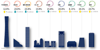 核心商圈租金表現(xiàn)分化。中關(guān)村科技企業(yè)受宏觀經(jīng)濟(jì)和行業(yè)調(diào)整影響,擴(kuò)張減速甚至縮編,加上新寫字樓不斷入市,競(jìng)爭(zhēng)加劇,租金環(huán)比降幅達(dá) 7.6%。亮馬河商圈以高端商務(wù)為主,雖租戶對(duì)租金不敏感,但整體市場(chǎng)環(huán)境使企業(yè)租賃意愿降低,租金環(huán)比下降 6.0%。