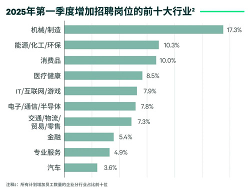 獵聘數(shù)據(jù)顯示,2025年第一季度計劃增加員工數(shù)的企業(yè)占比環(huán)比提升5.2個百分點至25.6%,而計劃減少的比例環(huán)比下降12個百分點至19.1%。在增加招聘崗位的前十大行業(yè)中,70%與新質生產(chǎn)力和消費高度相關。行業(yè)龍頭企業(yè)的動向同樣反映這一趨勢,近期騰訊和阿里巴巴均表示將加大人員招募力度。