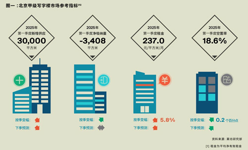 2025年4月8日(北京)-- 全球知名的房地產(chǎn)顧問服務(wù)公司萊坊發(fā)布2025年第一季度《北京甲級寫字樓市場報告》。報告指出,2025年第一季度,北京市甲級寫字樓平均租金環(huán)比下降5.8%至每月每平方米人民幣237元。本季度有一個新項目竣工交付,共30,000平方米,全市甲級寫字樓存量上升至1,212.5萬平方米。全市平均空置率為18.63%,環(huán)比上升0.2個百分點。