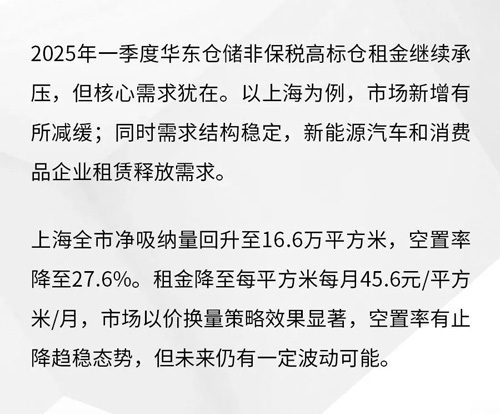 第一太平戴維斯(Savills)發(fā)布2025第一季度中國物流倉儲市場回顧及展望。在復雜的宏觀環(huán)境下,市場仍面臨多重挑戰(zhàn)。盡管如此,近期由電商驅(qū)動的需求回升。隨著消費者愈發(fā)注重性價比并尋找特色產(chǎn)品,電商平臺之間的競爭愈發(fā)激烈。服務(wù)質(zhì)量和配送速度成為核心競爭點,這也促使企業(yè)更加重視靠近主要消費市場的倉儲選址。