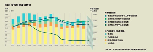 主要零售街鋪的租賃活躍度有所提升,但由于零售銷售額下跌,整體租金仍面臨下行壓力。
