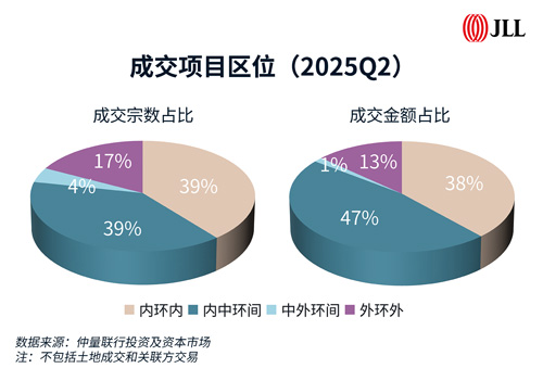 從需求結(jié)構(gòu)來(lái)看,投資性需求占比達(dá)66%,雖環(huán)比小幅回落,但專業(yè)投資者的穩(wěn)定參與印證了市場(chǎng)長(zhǎng)期向好的基本面。從區(qū)域分布來(lái)看,中環(huán)內(nèi)項(xiàng)目貢獻(xiàn)了85%的成交金額和78%的成交宗數(shù),核心區(qū)域資產(chǎn)集聚效應(yīng)顯著。