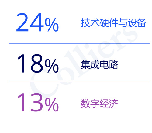 本季度,技術(shù)硬件與設(shè)備、集成電路、數(shù)字經(jīng)濟(jì)成為貢獻(xiàn)上海產(chǎn)業(yè)園區(qū)租賃需求的前三大行業(yè)。