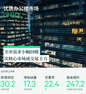盡管面臨新增需求不足和空置率上行的挑戰(zhàn),上半年市場(chǎng)仍表現(xiàn)出了一定的活躍度。全市凈吸納量環(huán)比上升126.1%至17.3萬(wàn)平方米,整體空置率較去年年底上升0.3個(gè)百分點(diǎn),達(dá)到22.4%。