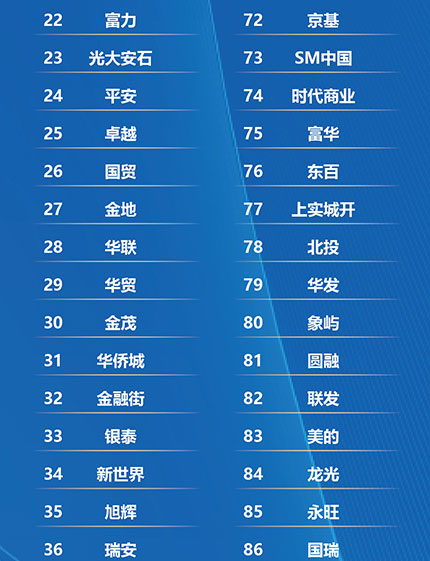 以下為2025年度中國商業(yè)地產(chǎn)品牌價值100強研究成果:
