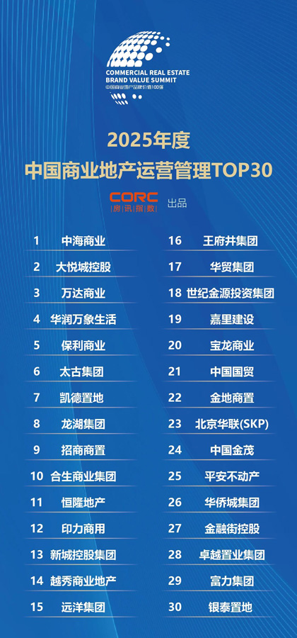 以下為2025年度中國商業(yè)地產(chǎn)運營管理TOP30研究成果: