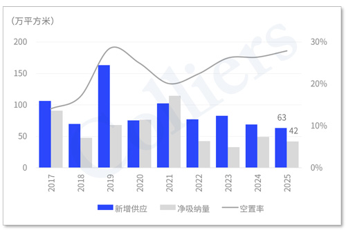 深圳甲級(jí)寫(xiě)字樓年度新增供應(yīng)、凈吸納量和空置率