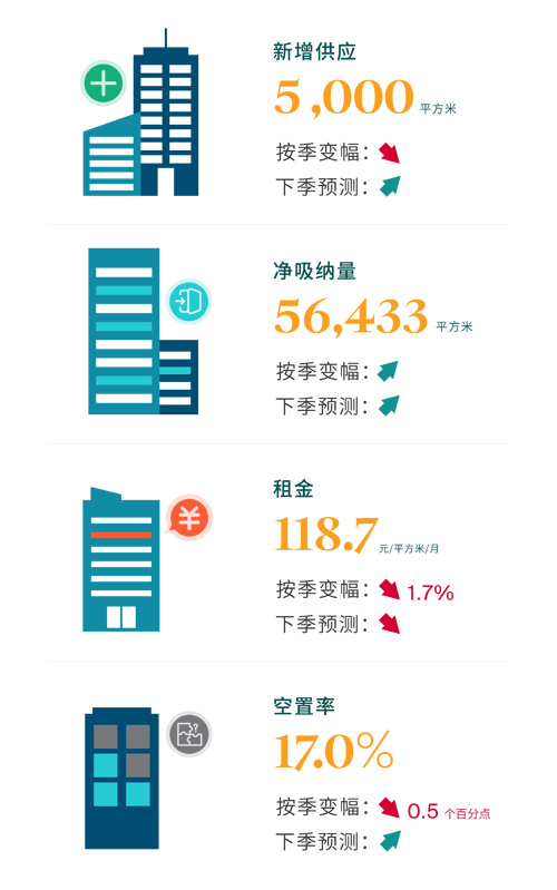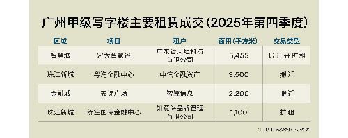 第四季度,廣州市甲級寫字樓市場僅錄得1 宗新增供應,為丸美集團總部大樓。由于項目以自用為主,對外出租僅為零星面積,實際入市體量約5,000平方米,對市場新增壓力有限。受年末被壓抑需求集中釋放帶動,凈吸納量回升至56,433平方米,為全年單季最高;在去化改善的支撐下,全市空置率環(huán)比收窄0.5個百分點至17.0%;乜慈,盡管需求側同比增至121,461平方米,但仍明顯弱于供給側新增的482,076平方米,使全年凈吸納量僅處于近五年中位水平;供給集中入市仍是推升空置率同比上行的主因。