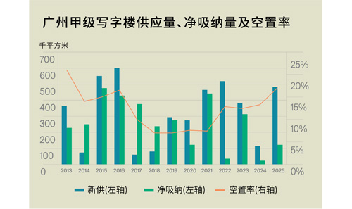 “展望2026年,廣州甲級寫字樓仍將面臨超過140萬平方米的新增供給壓力。雖然2025年需求有所修復,但供需缺口尚未出現(xiàn)實質性收斂,預計全年空置率仍處上行通道。進入2026年一季度,部分延期項目有望集中交付;這類項目普遍” 經(jīng)歷了半年至一年的預招商,入市初期或能帶來一定的凈吸納增量,但在供給體量仍顯著偏大的背景下,空置率大概率繼續(xù)抬升,市場競爭將更依賴“定向讓利+條款組合”來實現(xiàn)去化!
