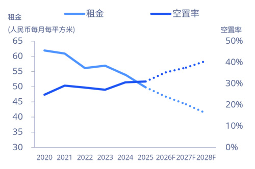 空置率承壓受供需雙側(cè)因素共同影響,若需求端未能實(shí)現(xiàn)顯著回升,市場(chǎng)租金將持續(xù)承壓下行,維持底部震蕩態(tài)勢(shì)。