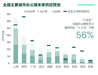 2026年全國(guó)十城辦公樓新增供應(yīng)量預(yù)計(jì)達(dá)470萬(wàn)平方米,同比小幅增長(zhǎng)7%,2027年和2028年將逐步回落至420萬(wàn)平方米和350萬(wàn)平方米。