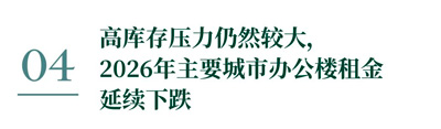2026年市場(chǎng)將延續(xù)供大于求的格局,十城辦公樓平均租金預(yù)計(jì)將繼續(xù)下滑8%左右,大部分城市仍將面臨“以價(jià)換量”的局面。作為當(dāng)前唯一的空置率20%以下的市場(chǎng),加之未來(lái)三年新增供應(yīng)有限,北京辦公樓租金降幅將在2026年顯著收窄至5%以內(nèi);其他三個(gè)一線城市短期內(nèi)的去化壓力仍然較大,預(yù)計(jì)2026年租金跌幅將達(dá)到7-10%。