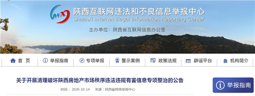 房訊網(wǎng)訊 近日陜西省互聯(lián)網(wǎng)信息辦公室發(fā)布公告,為營(yíng)造清朗的網(wǎng)絡(luò)空間,建設(shè)良好的網(wǎng)絡(luò)生態(tài),確保房地產(chǎn)市場(chǎng)穩(wěn)定,陜西省互聯(lián)網(wǎng)信息辦公室、陜西省住房和城鄉(xiāng)建設(shè)廳決定從即日起,開(kāi)展為期一月的清理破壞陜西房地產(chǎn)市場(chǎng)秩序違法違規(guī)有害信息專項(xiàng)整治。