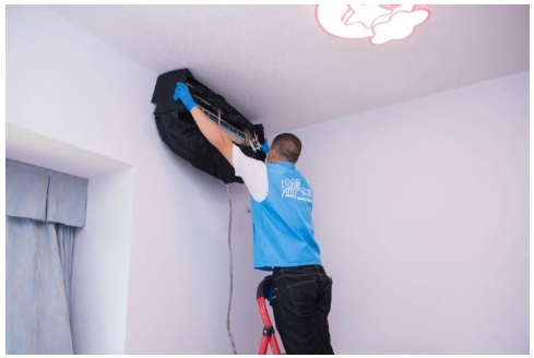 實地物業(yè)人員上門為業(yè)主清洗空調