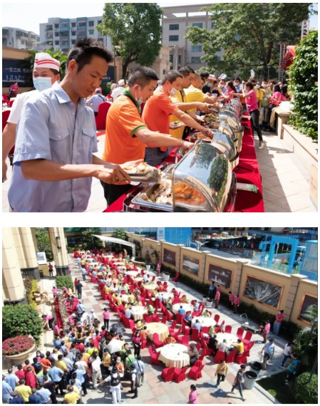 的士司機作為城市一線服務(wù)者,也是國維中央廣場一直關(guān)心的群體。正值重陽,國維中央廣場為到場千名的士司機準備了精美餐點,的士司機們共享美食,現(xiàn)場其樂融融。