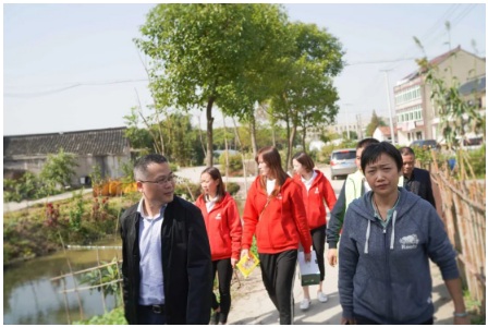 △ 陸家橋村村委書記朱榮斌向派米雷公益服務中心的志愿者們介紹在籍老人們的情況