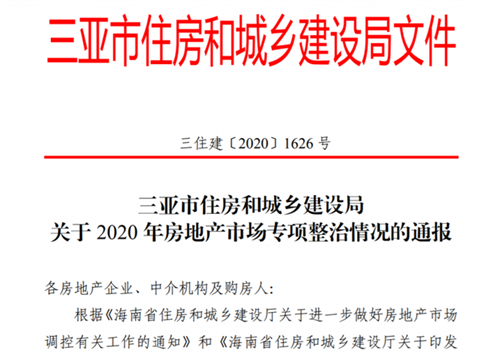 通報(bào)稱,在本次房地產(chǎn)市場專項(xiàng)整治過程中,發(fā)現(xiàn)的主要問題包括部分房企存在違規(guī)銷售的行為:“三亞當(dāng)代藝術(shù)館暨世界手工藝?yán)硎聲?huì)國際交流中心 B1-d1-8 地塊”項(xiàng)目(推廣名:藝海棠)、“三亞海棠灣區(qū)南田農(nóng)場東風(fēng)分場”項(xiàng)目(推廣名:海棠花開)及三亞偉奇溫泉度假公寓(推廣名:三亞天驕·海棠灣)等3個(gè)項(xiàng)目,開發(fā)企業(yè)在明知購房人無購房資格的情況下,仍與其簽訂認(rèn)購協(xié)議,違反了海南省房地產(chǎn)調(diào)控政策,違規(guī)銷售。