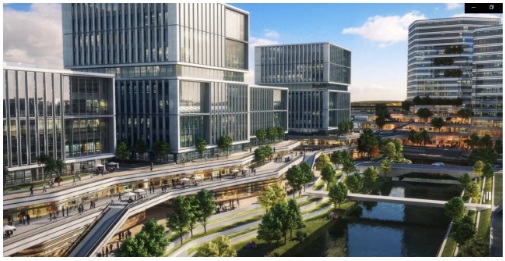 此外TOD開發(fā)模式的靈活應用使得漕河涇趙巷科技綠洲與地鐵17號線嘉松中路站實現(xiàn)有效對接,極大的提升了區(qū)位交通優(yōu)勢,空中慢行廊橋串聯(lián)各個區(qū)域,可由軌交、公交樞紐便捷步行至辦公空間、商業(yè)中心及配套空間。