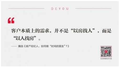 曾經(jīng)的房產(chǎn)中介賺差價(jià)、打信息差,甚至為了提高銷售效率,給客戶看更少的房,通俗點(diǎn)講,就是這套你買不買,不買馬上就賣了。但現(xiàn)在,在德佑內(nèi)部,我們關(guān)注一個(gè)指標(biāo)叫:一帶多看。房產(chǎn)中介不是做信息不對(duì)稱的生意,而是做信息對(duì)稱的生意。房屋交易低頻且標(biāo)的額巨大,每個(gè)人可能經(jīng)歷的就是一次,往往客戶是處于非常迷茫的狀態(tài),現(xiàn)實(shí)中,最容易出現(xiàn)的問(wèn)題是:客戶不知道自己不知道,同時(shí)也不知道自己應(yīng)該知道什么。