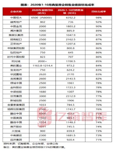 但從目前房企銷售目標(biāo)完成情況來(lái)看,企業(yè)項(xiàng)目與產(chǎn)品的區(qū)域布局對(duì)銷售額并不起決定性作用。一些為大家所熟知的深耕二三四線城市的企業(yè),今年前10個(gè)月的銷售目標(biāo)完成率相當(dāng)理想,例如恒大的銷售額為6352.2億元,完成率為92%。碧桂園的目標(biāo)完成率雖然沒(méi)有統(tǒng)計(jì),但其在今年前10個(gè)月完成6557.9億元的銷售額,以及4780.2億元的新增貨值已經(jīng)足夠具有說(shuō)服力。