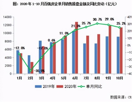 據(jù)統(tǒng)計(jì),2020年10月,TOP100房企中有近8成企業(yè)實(shí)現(xiàn)單月業(yè)績(jī)同比提升。截至10月末,已有超8成房企累計(jì)業(yè)績(jī)超過(guò)去年同期,實(shí)現(xiàn)同比增長(zhǎng)。