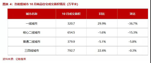 總的來看,10月一線和三四線城市住宅成交量同比上升,環(huán)比下降,核心二線和普通二線城市同環(huán)比均下降,最終導(dǎo)致單月住宅市場同比上行,環(huán)比下行,銀十表現(xiàn)低于預(yù)期。