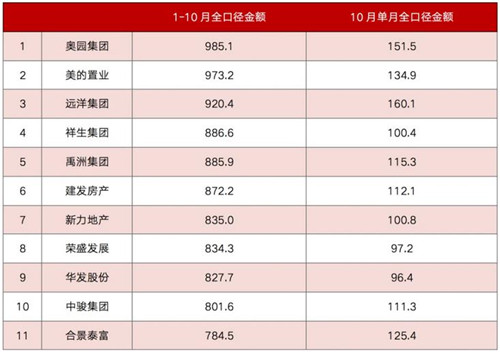 截止至2020年10月31日,2020年中國房地產(chǎn)企業(yè)銷售排行榜中,全口徑金額破“千億”的房企已達27家。