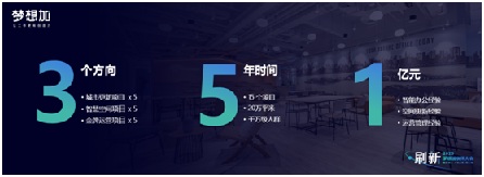 未來五年,夢想加計劃投入1億元資金,從“城市更新”、“智慧空間”、“金牌運營”3個方向的項目中,輸出有關于智能辦公、空間更新、運營管理等方面的經(jīng)驗,全面提升辦公空間服務行業(yè)的品質。
