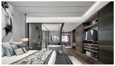 “盡情去享受生活的滋味,我們感受到的越多,我們便生活得越長久”,精謐生活的本質(zhì)在于超越現(xiàn)實之上的靜謐,細(xì)細(xì)品味,慢慢休憩,積蓄停歇之力,為更好出發(fā)修整身心。因此,對于主臥,設(shè)計師更強調(diào)居者與空間、物品的關(guān)系及其所蘊含的意義和情緒。