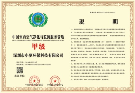 近日,經(jīng)中國企業(yè)發(fā)展促進(jìn)委員會與中國優(yōu)質(zhì)品牌中心雙方評審,鑒定深圳市小蘿環(huán)?萍加邢薰痉现袊覂(nèi)空氣凈化與監(jiān)測服務(wù)甲級資質(zhì),并頒發(fā)資質(zhì)證書,證書編號為CPED20191060231。