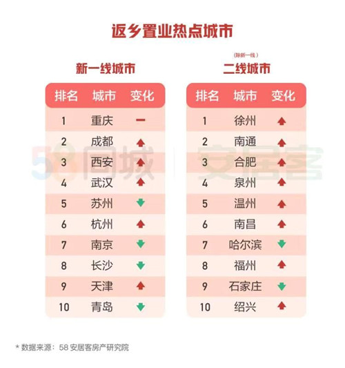 數(shù)據(jù)顯示,除一線城市之外,二線城市中,徐州位列返鄉(xiāng)置業(yè)熱門城市首位,南通、合肥等城的熱度也相對靠前。值得一提的是,與上述返鄉(xiāng)置業(yè)熱門城市不同,東北地區(qū)的返鄉(xiāng)置業(yè)熱度有所下降,僅哈爾濱一城位列其中。