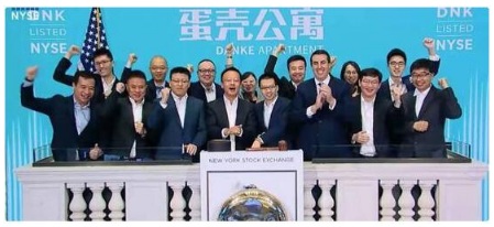 時(shí)針指向紐約當(dāng)?shù)貢r(shí)間10點(diǎn)整,蛋殼公寓(DNK)正式開(kāi)始交易,開(kāi)盤(pán)價(jià)報(bào)13.51美元/股,市值逾24.5億美元。
