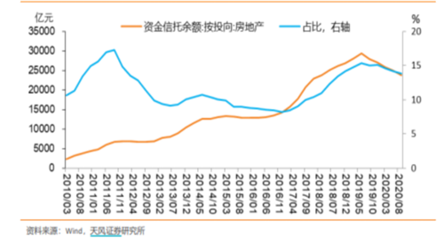 天風(fēng)證券預(yù)計(jì)綜合看來(lái)明年房地產(chǎn)信托融資會(huì)繼續(xù)下降,且降幅高于今年。