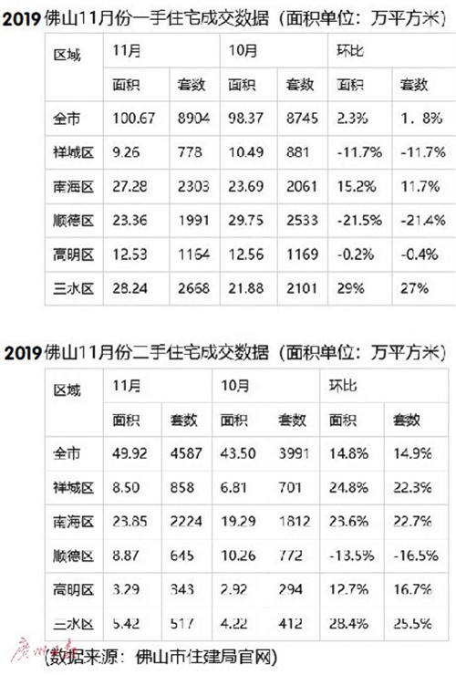 佛山市住建局于去年12月11日發(fā)布11月一手房和存量房的成交數(shù)據(jù),記者對(duì)比了去年11月和10月一、二手房佛山五區(qū)的成交數(shù)據(jù)。此前,佛山多個(gè)靠近廣州的鎮(zhèn)街對(duì)外地人購房實(shí)施限制,需要連續(xù)一年以上的個(gè)稅或社保繳交記錄。去年11月29日,佛山人才新政實(shí)施,本科以上學(xué)歷的購房者無須個(gè)稅或社保記錄即可享受首套房購房待遇。