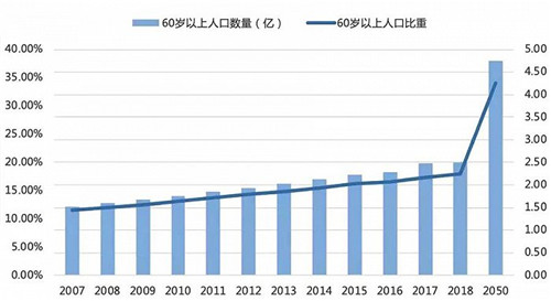 人口老齡化是社會必然的趨勢。2019年底,我國65歲以上老年人口已有1.76億,整體呈現出基數高、增長快的特征,養(yǎng)老需求供給面臨較大的缺口。從人口結構測算,自2022年開始我國每年新增老年人口將超1200萬,2022年-2050年,我國將會進入加速老齡化階段,我國養(yǎng)老產業(yè)將會進入黃金時期,養(yǎng)老需求爆發(fā)將會推動產業(yè)的飛速發(fā)展。