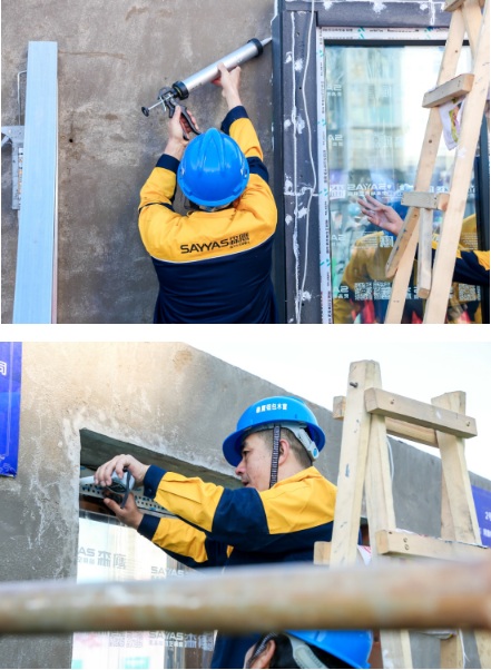 選手們摩拳擦掌,精神抖擻,在有限的時(shí)間內(nèi)用最高專注度完成作品。六個(gè)參賽團(tuán)隊(duì)各自緊張而有序的推進(jìn)著自己的施工方案,既展示施工團(tuán)隊(duì)規(guī)范的施工作業(yè),也提高團(tuán)隊(duì)的協(xié)調(diào)能力。他們飽含工匠人的赤誠(chéng),揮灑汗水,團(tuán)結(jié)協(xié)作。通過(guò)實(shí)操比賽為企業(yè)提供一個(gè)交流的平臺(tái),參賽團(tuán)隊(duì)間相互切磋交流總結(jié)施工中的不足,學(xué)習(xí)優(yōu)秀的施工工藝。既創(chuàng)造了表現(xiàn)自我、鍛煉自我的機(jī)會(huì),也提高了企業(yè)自身的施工實(shí)際操作能力。而現(xiàn)場(chǎng)的觀摩者,也在交流觀察中學(xué)習(xí)了更多的實(shí)操經(jīng)驗(yàn)。以賽促學(xué),規(guī)范行業(yè)設(shè)計(jì),推動(dòng)行業(yè)健康發(fā)展;以學(xué)促知,讓社會(huì)各界人士更多的了解被動(dòng)房,了解被動(dòng)式門窗設(shè)計(jì)安裝工藝,了解建筑節(jié)能,通過(guò)大賽加速推動(dòng)被動(dòng)房相關(guān)行業(yè)的發(fā)展。