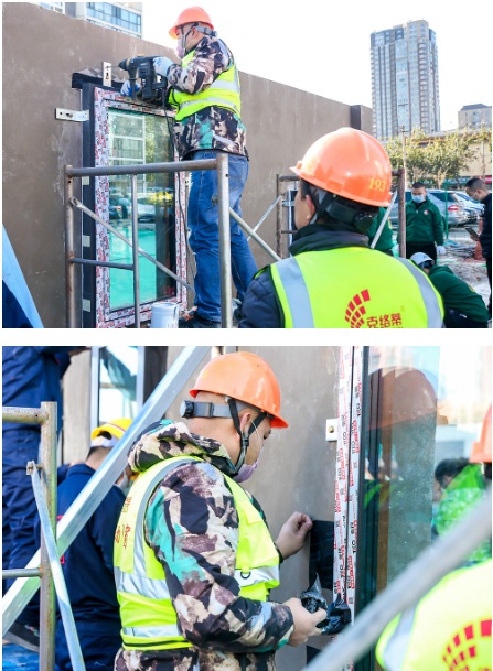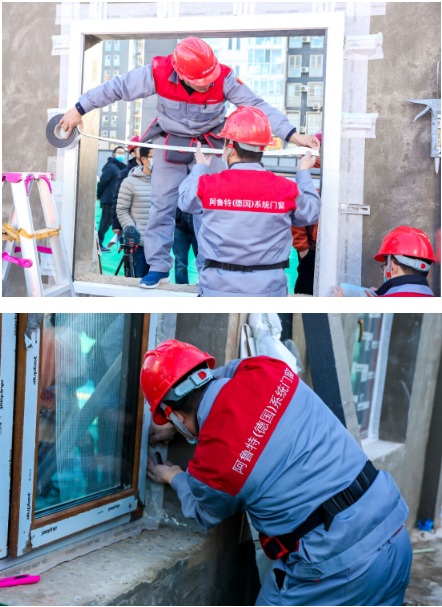 阿魯特代表隊(duì)安裝的德國(guó)Aluplast Ideal8000被動(dòng)窗,整窗K值0.92,滿足寒冷地區(qū)使用,使用外掛式安裝工藝,開創(chuàng)性的使用了附框系統(tǒng),可以三維調(diào)節(jié),適應(yīng)不同建筑高度的需要,解決了窗戶交叉施工的成品保護(hù)問(wèn)題,有效解決了客戶換窗的需求。根據(jù)集成化,裝配式建筑的思路,增加了窗套及窗臺(tái)板設(shè)置,顏色一致,解決用戶的后顧之憂。